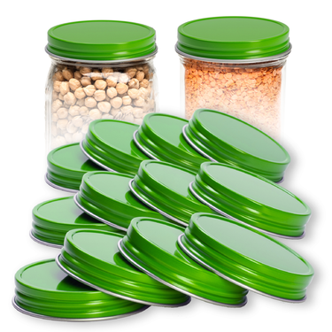 AllSpice aluminum mason jar lids will perfectly complement your mason jar pantry storage. High quality aluminum is food-safe and will not rust or bend. Choose from black, red, blue or white to match your kitchen decor. Each set includes 12 lids with a BPA-free integrated gasket to seal in freshness. NOT FOR CANNING.